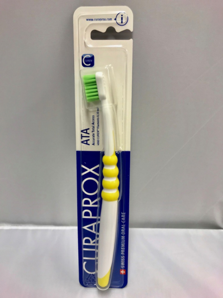 Curaprox ATA tandborste har 4060 mjuka och tunna (0,12 mm) Curen fibrer som garanterar skonsam och effektiv plackkontroll.