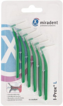 Miradent I-Prox L mellanrumsborste XX-fine har ett vinklat borsthuvud som gör det lättare att komma åt mellan de bakre tänderna och från insidan. Långt, ergonomiskt skaft och plastöverdragen metalltråd för effektiv rengöring.