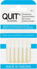 Quit Brushstic är en plasttandsticka med borstfibrer och fluor.