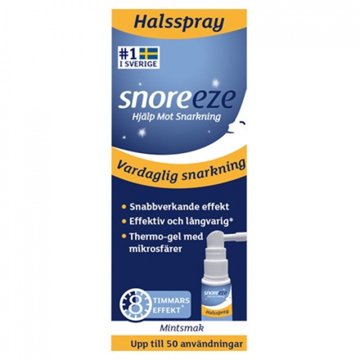 Snoreeze Halsspray finns i 23.5 ml förpackning vilket ger upp till 50 doser.