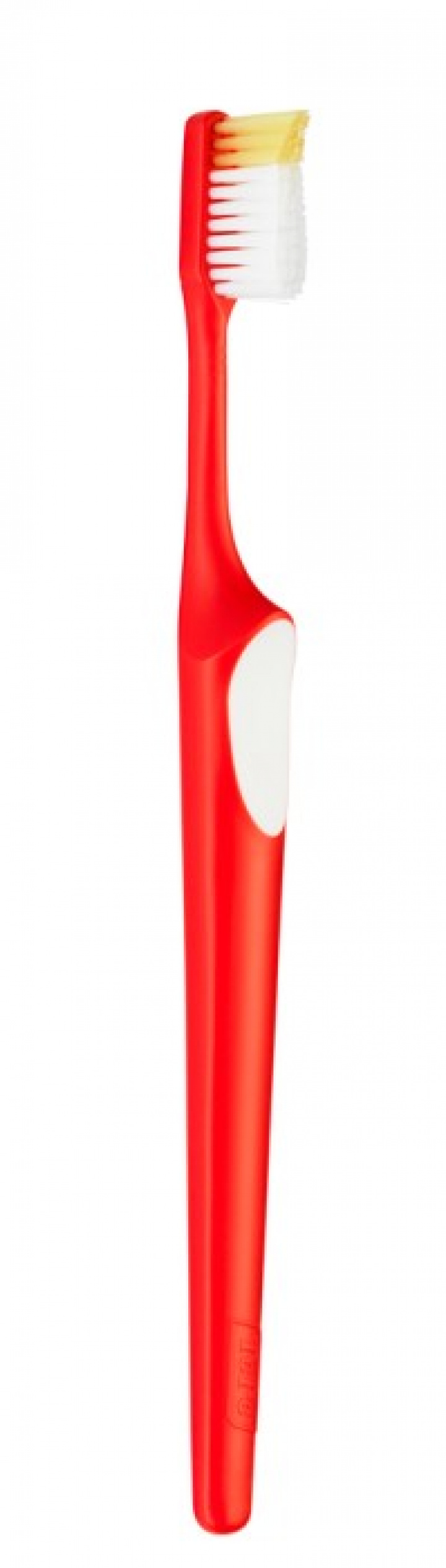 Stråna är rundade i tippen för en skonsam och mjuk rengöring. TePe Novas tandborstar har tippar i olika färger som berättar vilken hårdhet stråna har.